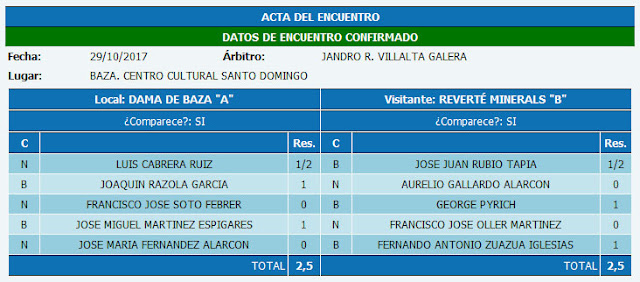 Dura derrota la sufrida ayer domingo por el Club de Ajedrez Dama de Baza frente al Reverte Minerals A, en la 3ª ronda de la Primera División Andaluza 2017. El encuentro celebrado en Almería terminó con el resultado de 4,5 - 0,5.